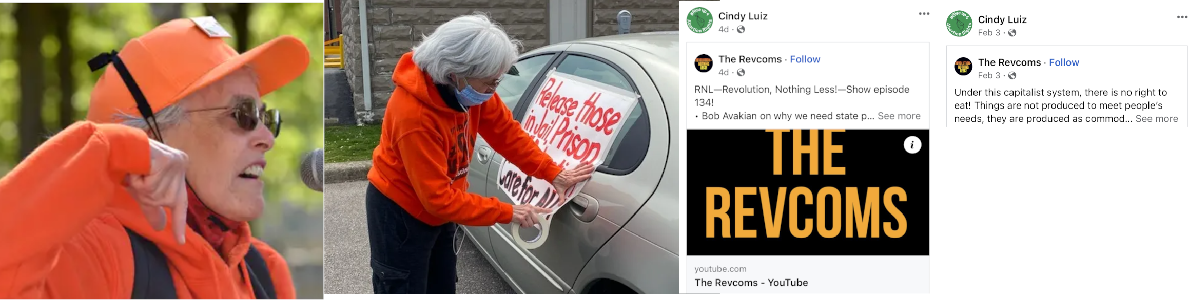 Cindy Gay Luiz (DOB: 01/06/52) is a granny volunteer for the Revolutionary Communist Party (Revcom) affiliated group Refuse Fascism and probably a Revcom too. She participated in a January 2021 Detroit car caravan that protested the J6 riot. She's also a member of the Revcom group Rise Up 4 Abortion and she spoke at one of the group's rallies in Detroit in 2022. Luiz is a Bob Avakian groupie who posts a lot of Revcom crap on Facebook. She lives in a nice semi-detached house in the Detroit suburb of Hamtramck. https://archive.ph/2LTnL#selection-487.62-487.72 https://archive.ph/6JPA0 https://archive.ph/gU9Gk
