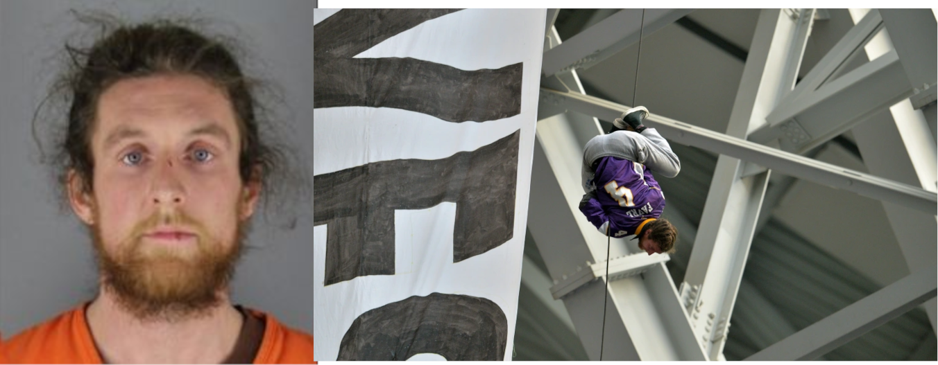 Karl "Carl" Scogin Zimmerman is an environmental radical who was arrested at a 2017 protest at a Vikings game. He climbed into the rafters and hung a banner, endangering hundreds of fans below. Zimmerman was arrested for burglary, disorderly conduct and trespassing. He lives in a large Victorian house in the Ventura Village neighborhood of Minneapolis owned by fellow stadium protester Carolyn Feldman. There are also several RNC 8 protesters including Monica Bicking (https://antifawatch.net/ViewReport/30b17d83), Eryn Trimmer (https://antifawatch.net/ViewReport/99292e14) and other suspected radicals living in the house.