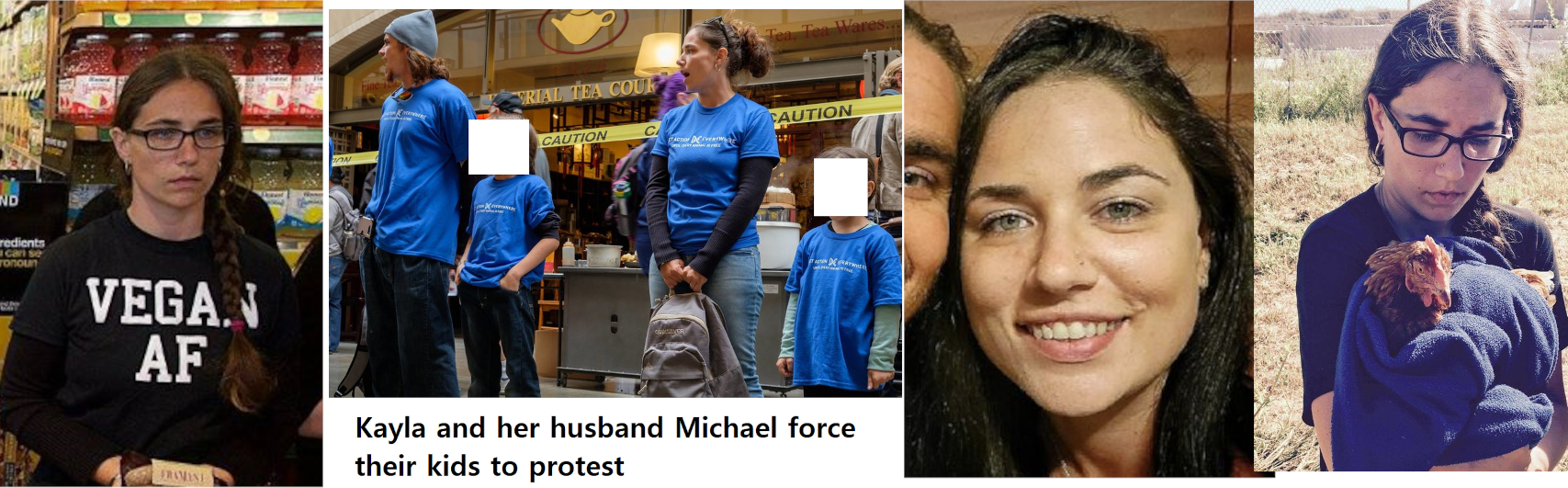 Kayla Jo Leaming (born Aug. '90) is a radical animal rights activist and an organizer for the Pinnelas, Florida chapter of Direct Action Everywhere (DxE). She's married to fellow DxE member Michael Leaming. She dragged her kids to a bear hunting meeting at the Florida Wildlife Commission and made them give speeches against hunting. Leaming was presumably on hand in 2017 when her husband stole a fish from a fisherman and threw it back into a St. Petersburg Lake. She was probably at a DxE protest of Chick Fil A's Cow Appreciation Day where several DxE members carried carving knives into a restaurant. The Leaming family likes to drag their young children along to protests and the kids have been documented at two DxE "direct actions". She lives in a crappy house with her Vegan family in the Orlando suburb of St. Cloud. Leaming runs a business called Roots and Edible Nuts, LLC. https://archive.ph/x5AQO https://archive.ph/7Q2dk
