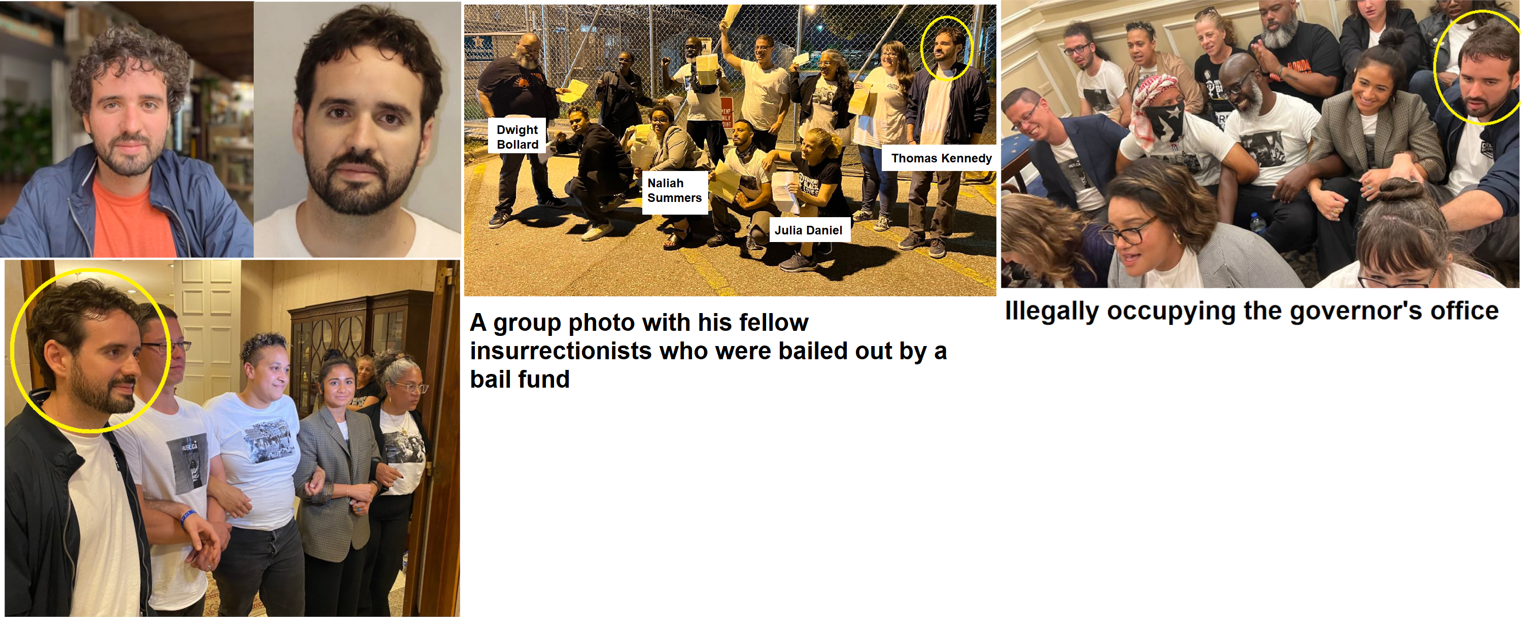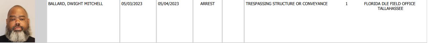 Dwight Mitchell Bollard was arrested at a May 2023 insurrection at the Florida state capitol which seems to have been a pro-illegal alien protest. Thirteen other radicals were also arrested and charged with trespassing. He's affiliated with Florida Rising and Dream Defenders. Police reports give his surname as "Ballard", but his own group refers to him as "Bollard". https://twitter.com/i/status/1654167653089411079