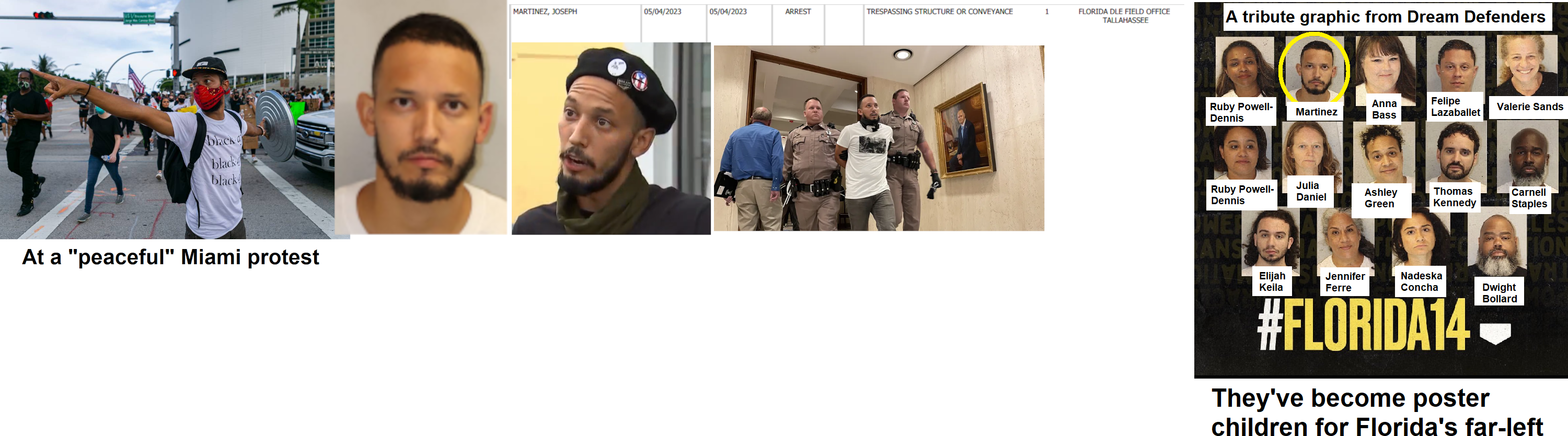 Joseph Martinez-Vasquez, Jr., aka Joseph Martinez is one of the leaders of the Dream Defenders, a radical group active in Florida that staged a May 2023 insurrection at the Florida state capitol. He was arrested and charged with trespassing. A Miami Herald article interviewed Martinez during the 2020 George Floyd riots and described him as being "at the forefront" of Miami "protests". When 31 Miami cops contracted COVID at the super-spreader riots, Martinez blamed the police for not wearing masks. He's described on an art site as an Afro-indigenous activist and poet although he doesn't look very afro. He's Puerto Rican and lived in Wisconsin before he moved to Miami a few years ago. https://archive.ph/8KibI https://archive.ph/CXeZj https://archive.ph/Zxxd1 https://archive.ph/pzXup