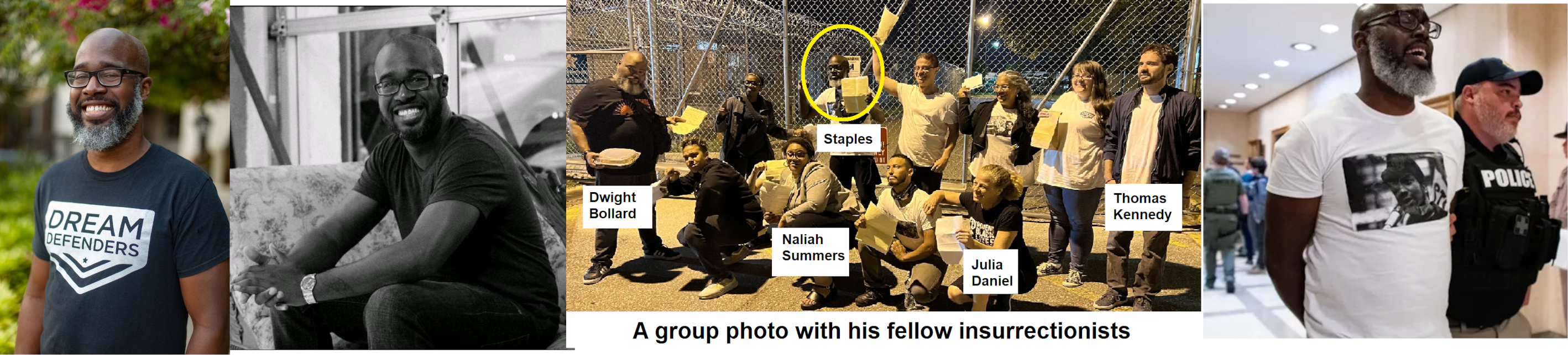 Carnell J. Staples (born Jun. '83) is an organizer for the radical group Dream Defenders and was arrested at a May 2023 insurrection at the Florida state capitol. He's a member of the quasi-governmental Broward County Racial Equity Task Force. Staples has an insurance license and may work as an agent when he isn't' rioting. He lives in Fort Lauderdale. https://www.linkedin.com/in/carnell-staples-237836a2