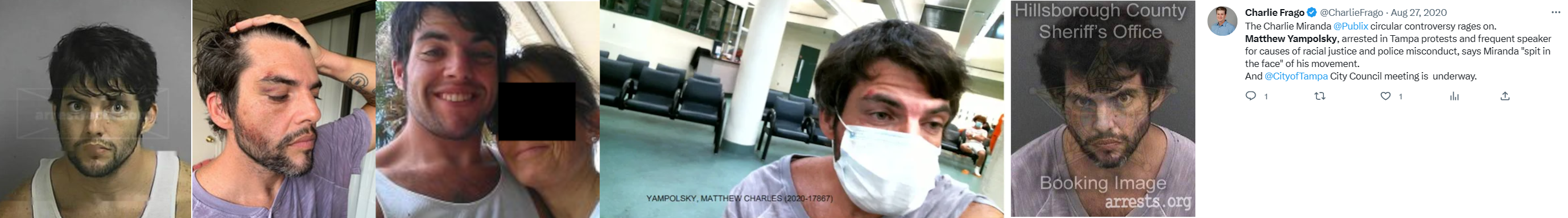 Matthew Charles Yampolsky was arrested at a BLM protest for helping illegally paint a BLM mural on a Tampa street. He claims to have been injured by jail deputies. An investigation cleared the deputies of wrongdoing. He lives in Town 'n Country north of Tampa. There's a person with the same name who lives in Winter Garden but they're different people. https://archive.ph/Tq6GN https://archive.ph/lLdgf
