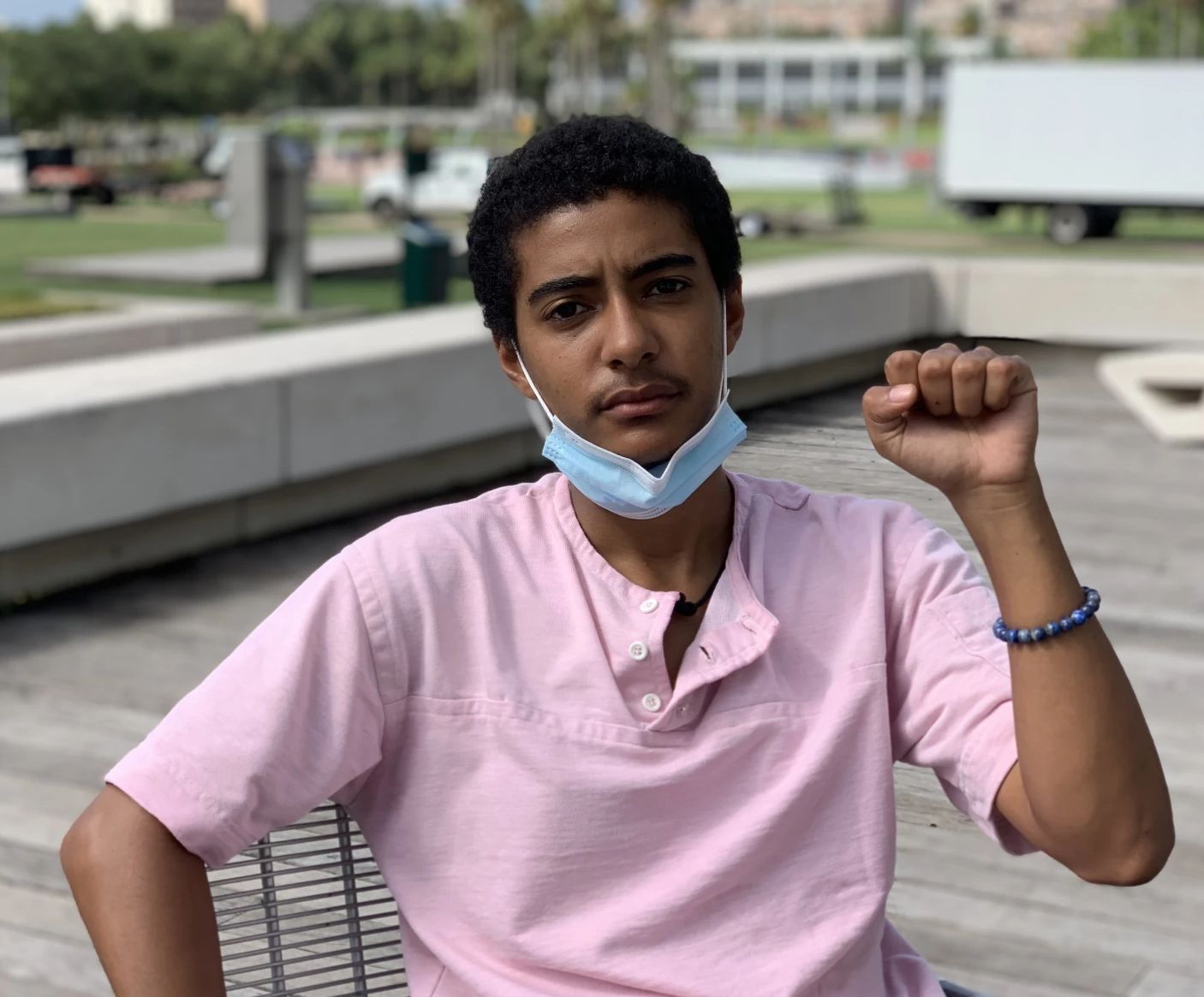 He's transgender and was arrested with his BLM buddies for painting an illegal BLM mural on a Tampa street in August 2020. He claims officers groped and abused him after his arrest. A female officer patted him down at the jail. As she touched his penis he said, "Ma'am, that's my vagina, you're touching my vagina. I don't have a penis as much as it may look like I do." https://archive.ph/Tq6GN#selection-1253.0-1253.12 https://archive.ph/QjXrx
