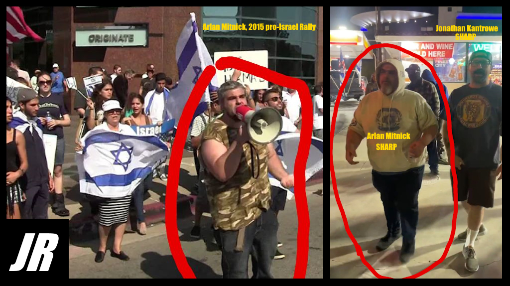 Arlan Mitnick, a Los Angeles-based “street poet” and long-time pro-Israel activist. In an unsurfaced YouTube video dated 2015, Mitnick—who is Jewish—once openly suggested that “we as Jews” must openly fight Hamas and throw baby dolls wrapped in fireworks onto college campuses. He is a Jewish member of SHARP and close friends with Jonathan "Beer Mug" Kantrowe of Tarzana, California, per Justice Report https://justicereport.news/articles/2023/11/11/zionist-sharps-exposed-after-israeli-propaganda-screening-turns-violent-in-los-angeles/