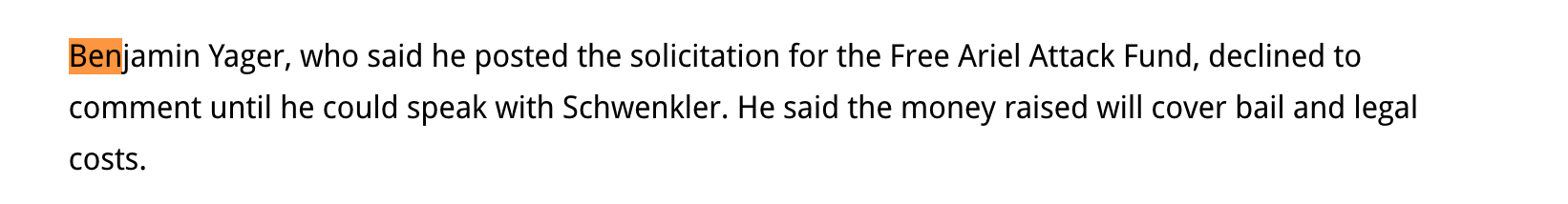 https://www.denverpost.com/2009/08/26/dem-hq-vandalism-suspect-posts-bail/ https://en.wikipedia.org/wiki/Bash_Back! Bash back member arrested in Denver for vandalizing Dem HQ (hilarious) Maurice Joseph Schwenkler, known in some circles as the transgendered activist Ariel Attack,