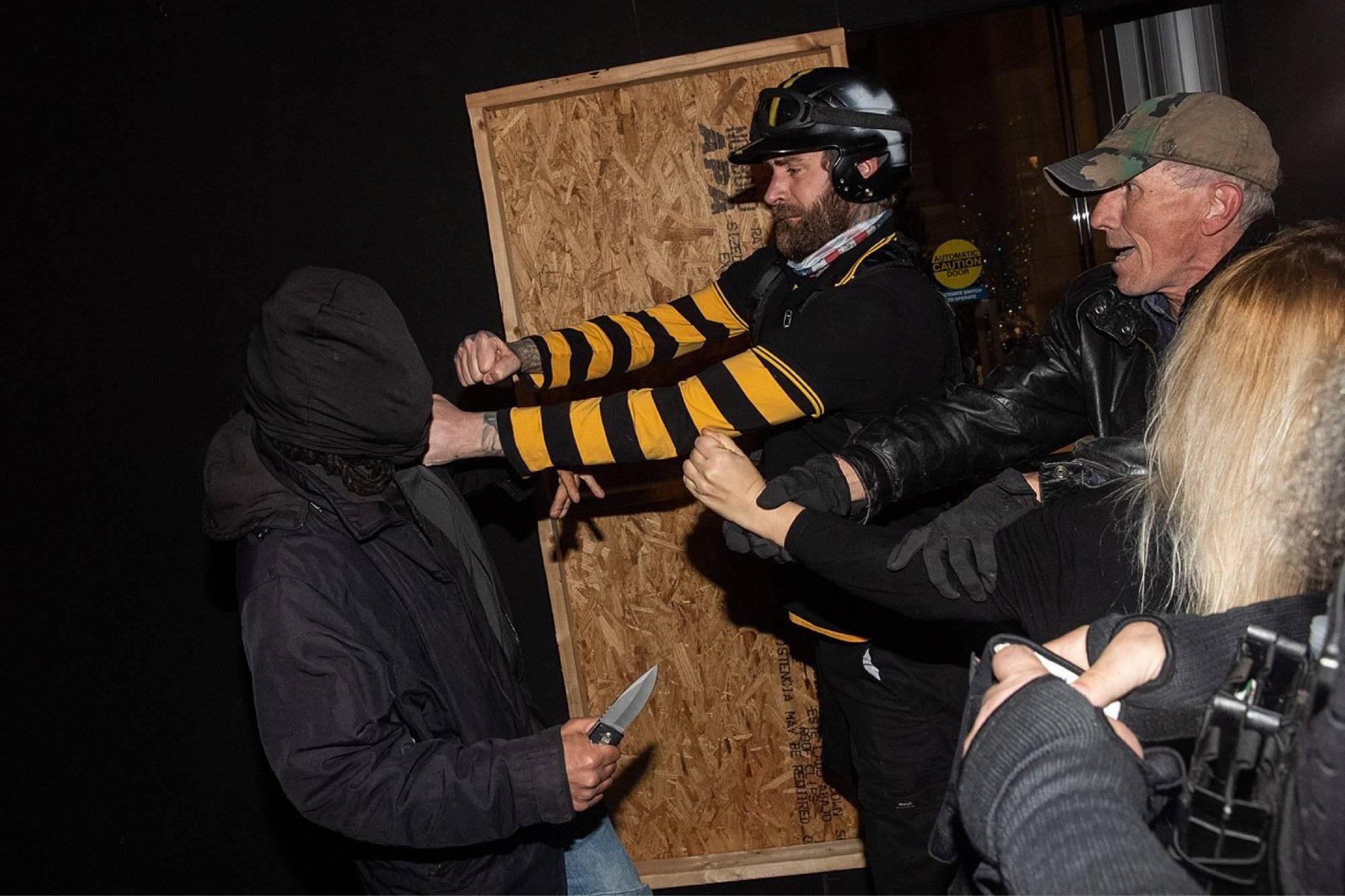 https://twitter.com/MrAndyNgo/status/1327751848468512768 https://mpdc.dc.gov/release/arrest-made-assault-dangerous-weapon-offense-1600-block-k-street-northwest On Saturday, November 14, 2020, 26 year-old Javien Michael Dawson, of Northeast, DC, was arrested and charged with Assault with a Dangerous Weapon.