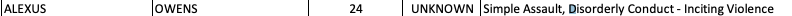Simple Assault, Disorderly Conduct - Inciting Violence https://mpdc.dc.gov/sites/default/files/dc/sites/mpdc/publication/attachments/Unrest-Related%20Arrest%20Data%20as%20of%20November%2015%202020.pdf