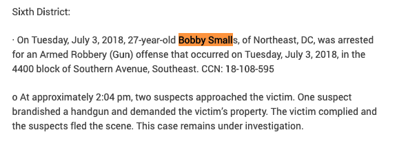 Bobby Smalls was arrested at the same location as Deberry. Charged w/ carrying a dangerous weapon and disorderly conduct - inciting violence. He has priors for armed robbery. https://archive.vn/3teo7