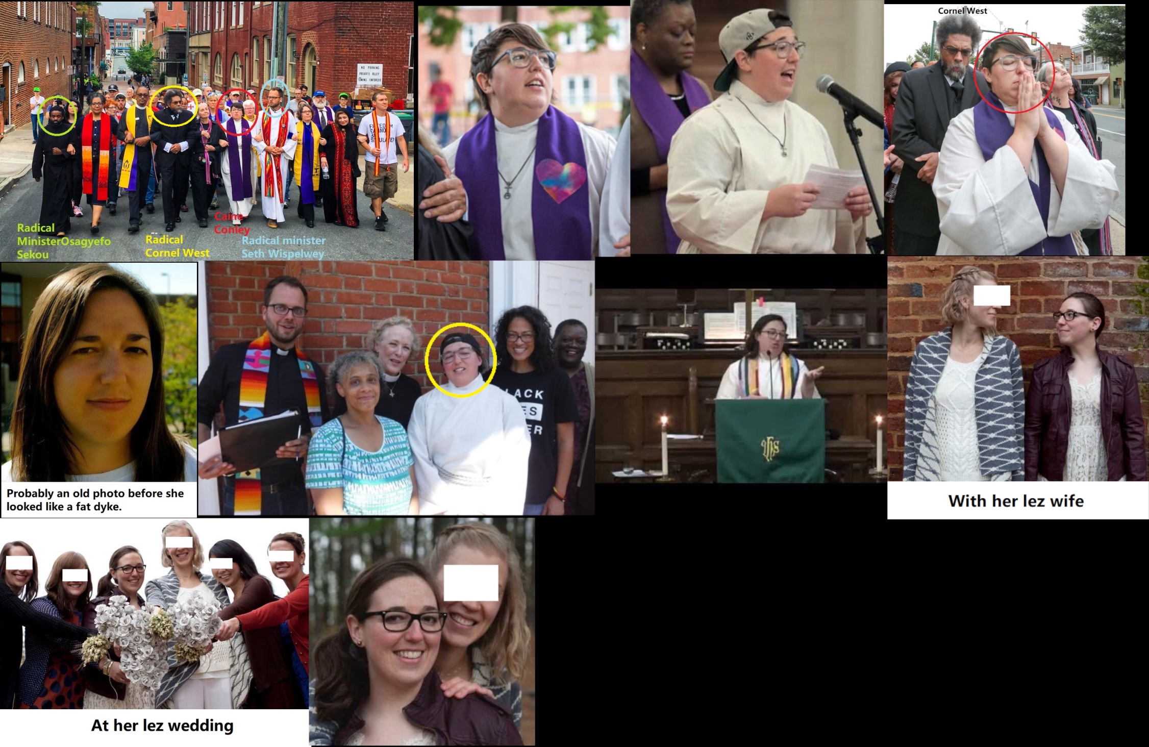 Rev. Brittany Dare Caine-Conley, AKA "Smash Patty", (DOB: 0/27/85) was one of the clergy organizers of the Unite the Right counter-protest. Caine-Conley was the Lead Organizer and President of Congregate Charlottesville which organized clergy for various protests. She was training to become a United Church of Christ (BHO's church) minister at the time of the rally. Caine-Conley is a graduate of Eastern Mennonite University and earned a Masters of Divinity degree. After obtaining her degree, she moved to Chicago in 2020 where she works in a healthcare and housing ministry. She also has a kinesiology degree from James Madison University but it doesn't appear she works out much. She's in a lesbian marriage and owns a condo in the Uptown neighborhood of Chicago with her wife. The happy couple have enough money to own a second Chicago condo that's probably an investment property. https://archive.vn/AIvBB, https://archive.vn/hRiZP, https://archive.vn/lpRQ9 https://www.linkedin.com/in/brittany-caine-conley-8026b22a https://www.youtube.com/watch?v=9ccDkhEqQa0&ab_channel=PilgrimUCCOakParkIL