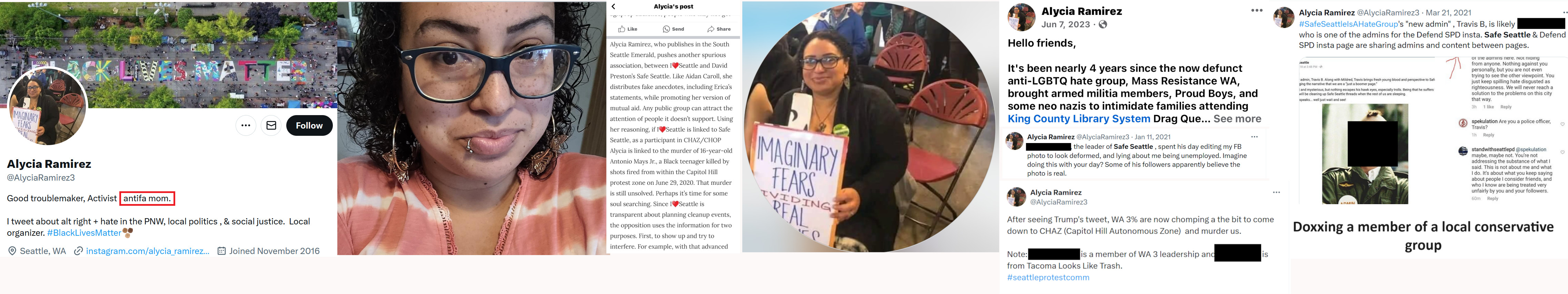 Born Aug. '92, she's a far-left Seattle activist who was allegedly involved in vandalism at CHAZ/CHOP. She was definitely at CHAZ and Tweeted from the occupied zone. Ramirez was also allegedly one of the organizers of a protest that blocked a Seattle freeway. She seems to have a real hatred of local conservative groups such as Safe Seattle and I Love Seattle, two groups who try to move the homeless from tent camps into permanent housing. She's doxxed several of their members on social media. Ramirez describes herself as an Antifa mom in her Twitter profile. Ramirez is the publisher of the South Seattle Emerald media site. She lives in Kirkland. https://archive.ph/wozOX#selection-1059.38-1059.52 (see pics for more back up)
