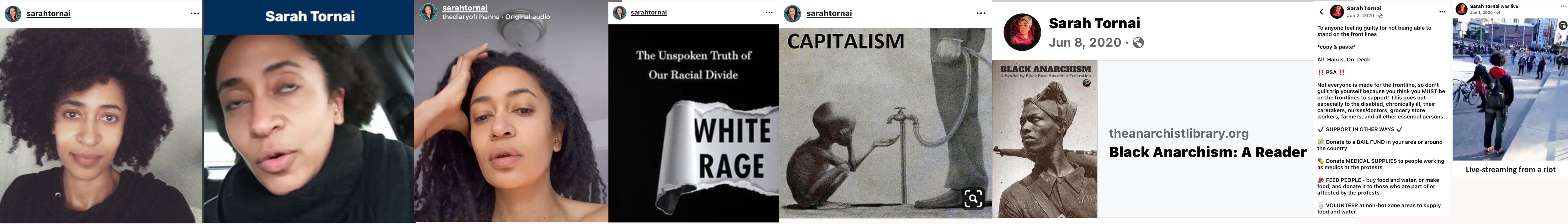 Sarah B. Tornai (Born Oct. '86) was at CHAZ/CHOP in June 2020 and spoke to the mob. Tornai had previously live-streamed from a riot in early June 2020 and was seen holding an insurrection flag at CHAZ during its early days. She also posts a lot of left-wing garbage on IG. Tornai studied at Maharishi International University in Iowa, a school known more for transcendental meditation than academics. https://archive.ph/tbRMd#selection-2473.0-2473.12 https://archive.ph/hXxT3 https://twitter.com/i/status/1270580215656222722