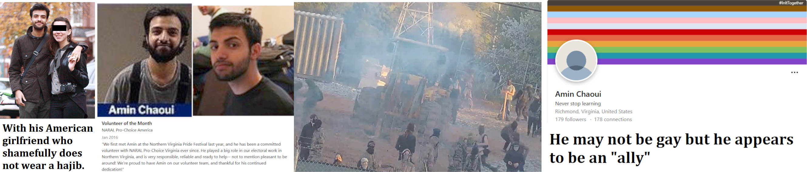 Amin Jalal Chaoui traveled to Atlanta to participate in the Cop City protests. He was arrested at an Antifa riot in March 2023 and charged with domestic terrorism. His LinkedIn profile indicates he's volunteered for pro-abortion groups in the past. According to court filings, he's an alcoholic Muslim who attends AA meetings. His family is probably from Algeria originally. Chaoui is a common Berber name in that country. He holds a B.A. from Virginia Commonwealth University. He's worked mostly in low level jobs such as retail sales or as a waiter, but he appears to have been working as an insurance agent for Bankers Life at the time of the riot. Prior to his arrest, he lived in a pleasant little house in the Montrose Heights neighborhood of Richmond with his roommates. https://archive.ph/PhS9w https://archive.ph/YgIEU https://archive.ph/wmUk0#selection-955.0-955.11 https://archive.ph/7GWw3 https://www.linkedin.com/in/amin-chaoui
