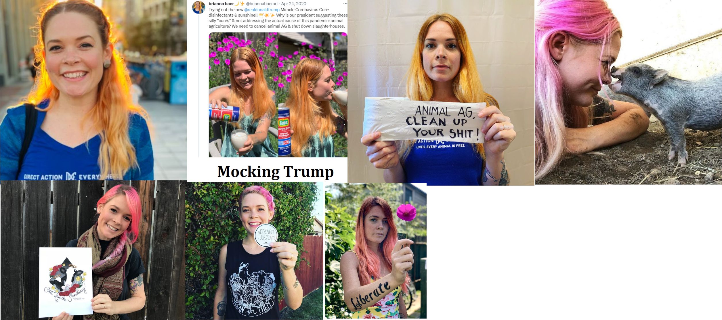 She's a member of the radical animal rights group Direct Action Everywhere (DxE) who was arrested for stealing livestock from a Sonoma farm. She has an Etsy shop where she sells Vegan items. Baer is believed to live in Berkeley. https://archive.ph/lXRbp#selection-1185.118-1185.130 https://www.etsy.com/shop/briannabaer