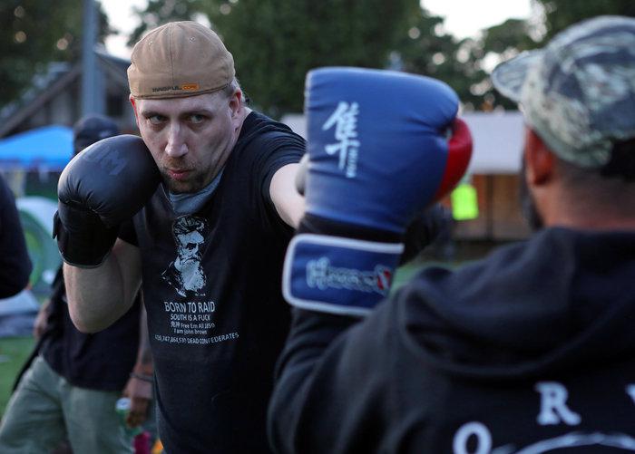 https://www.npr.org/2020/07/23/893533916/i-am-antifa-one-activist-s-violent-death-became-a-symbol-for-the-right-and-left Founder Duke Aaron greets members of the Puget Sound John Brown Gun Club. In 2017, van Spronsen was the club's first recruit.