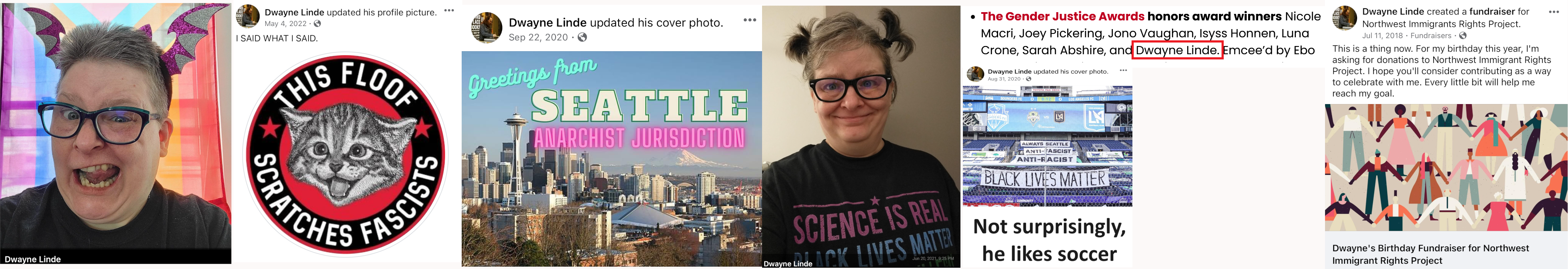 Linde admitted in court filings to participating in multiple protests/riots in Seattle during the George Floyd era. He has asthma and only participated in daytime riots because he thought he could avoid tear gas. He even held a one-man protest in front of a police barricade. Linde won a gender justice award from the Gender Justice League in 2019. He was living in the Capitol Hill neighborhood during the 2020 riots but seems to have moved to an apartment downtown. Linde works as a software test "engineer", ie beta tester. https://web.archive.org/web/20240226163854/https://storage.courtlistener.com/recap/gov.uscourts.wawd.286633/gov.uscourts.wawd.286633.93.0_1.pdf https://www.linkedin.com/in/delsea