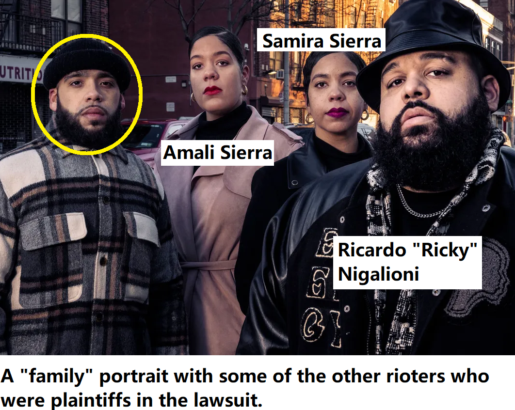 Ricardo "Luss" Ariel Nigalioni (born Apr. '90) participated in George Floyd riots in NYC and later was one of the plaintiffs in a class action lawsuit against the NYPD. He was awarded over $21K. Nigalioni is an R&B singer-songwriter who lives in an apartment down the street from Yankee stadium. https://archive.ph/qIdcU#selection-693.105-693.123 https://archive.ph/Tr5Cp#selection-1197.51-1197.69