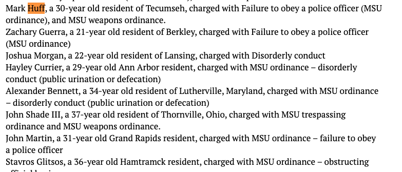 https://archive.is/STxG6 John Shade III, a 37-year old resident of Thornville, Ohio, charged with MSU trespassing ordinance and MSU weapons ordinance.