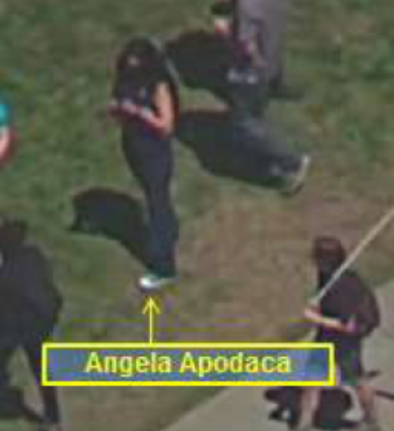 According to a 2016 criminal investigation by the California Highway Patrol recently obtained by the William McKinley Institute, Angela Marie Apodaca ""arrived at the California State Capitol to support a planned action to deny the Traditionalist Worker Party (TWP) from assembling and speaking at their event." Birthdate: 5/25/1970 https://wmkinstitute.com/chps-2000-page-report-on-2016-sacramento-capital-anti-white-antifa-terrorist-attack/ https://wmkinstitute.com/chp-helicopter-footage-of-the-2016-premeditated-anti-white-attack-in-sacramento/ https://wmkinstitute.com/the-torch-antifa-network-the-anarcho-terrorist-syndicate/