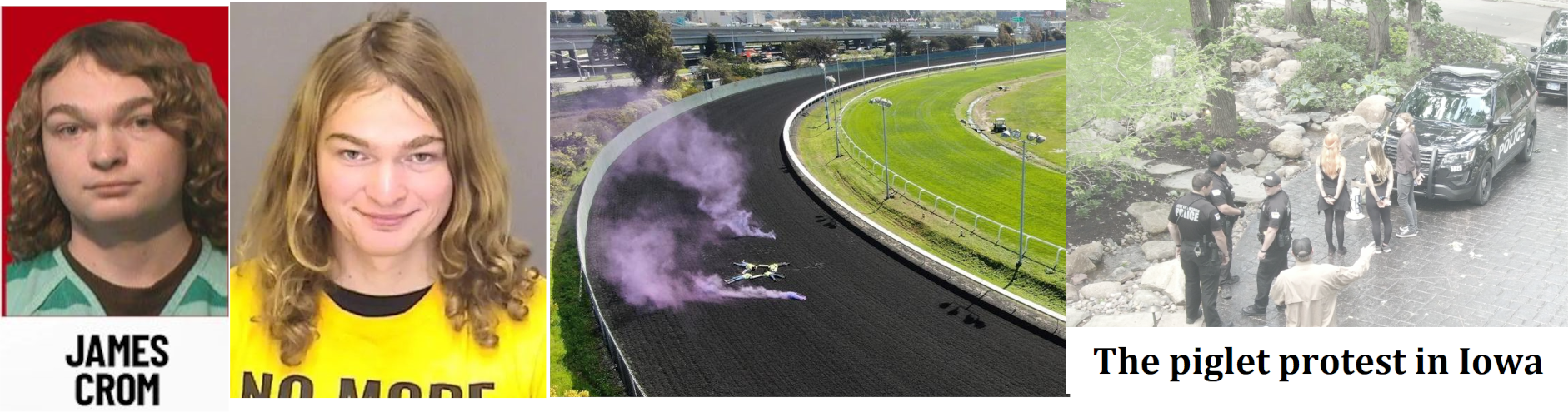Crom is a radical animal rights activist who was arrested for burying piglets in the front yard of a food executive's home in Iowa in 2020. He was later arrested at another protest by Direct Action Everywhere which shut down a Bay Area horse racing track in 2021. The protest also temporarily closed a Chinese COVID testing site due to security concerns. Crom was later sued by the racetrack. Crom's last known address is in Oakland. https://archive.ph/xeZ8l https://archive.ph/wm3Gb#selection-157.103-157.113 https://archive.ph/PMcPu