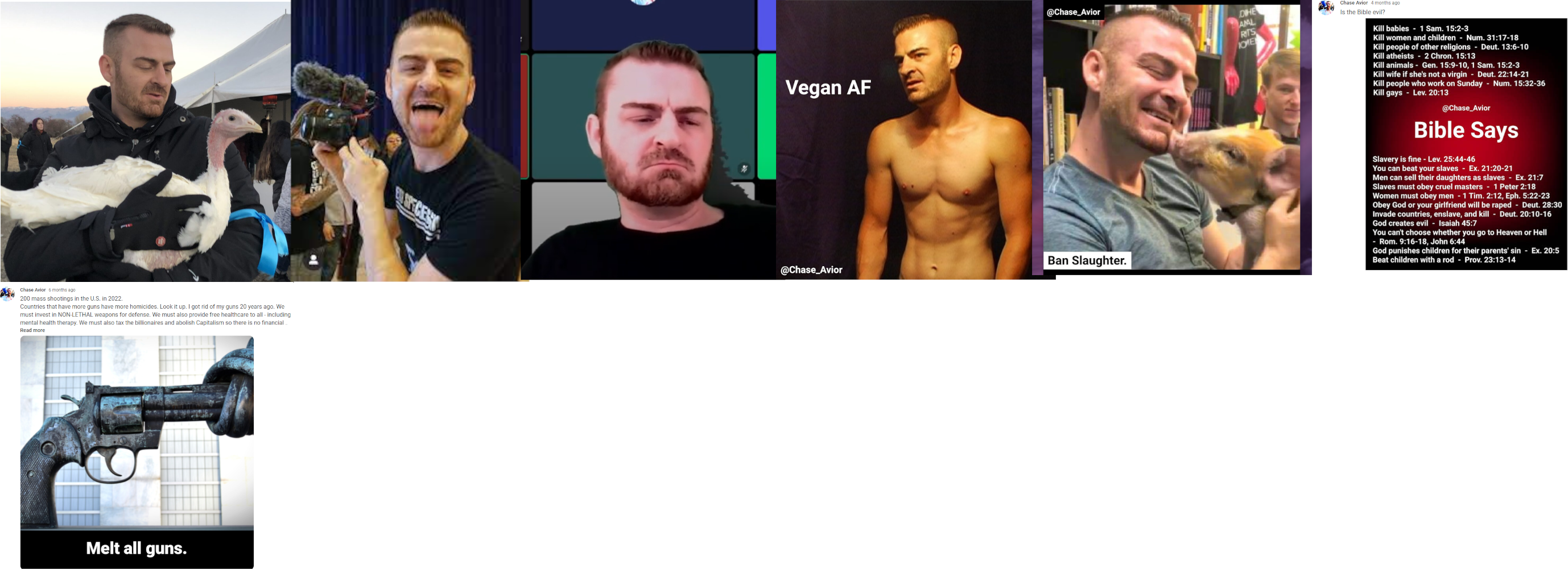 He's affiliated with the radical animal rights group Direct Action Everywhere. There's no evidence he's a tranny but he seems to be a big trans rights supporter. Avior is also anti Second Amendment. His only known "direct action" is a turkey rescue from a processing plant in 2018. He's dabbled in Hollywood on film crews and as an extra. Some sources refer to him as a film maker and director, but he only has two credits on IMDB. He's believed to live in the L.A. area. https://archive.ph/vimgN https://archive.ph/os4OH