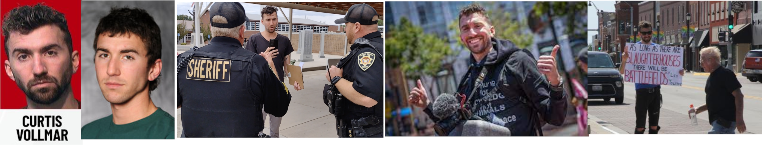 Curtis Anthony Vollmar (DOB: 02/28/87) is an animal rights activist and member of Direct Action Everywhere (DxE). In 2020 Vollmar was arrested along with four other DxE members for holding a funeral for dead piglets on an Iowa food company CEO's front lawn. He was charged with trespassing. In 2021, he travelled to North Carolina to disrupt a planning commission meeting because he was angry about Smithfield Food's pig shit. Vollmar was a middle-distance runner at Eastern Michigan University. After college, he was a math and science teacher and track coach for a while. When he isn't liberating farm animals he works as a cell phone salesman. His last known address was in Berkeley where DxE is headquartered. https://archive.ph/3A0ln https://archive.ph/lmAsH https://archive.ph/PnASq https://archive.ph/VS9Md Curtis leads a ballot measure in Sonoma County to ban most animal agriculture. He currently lives in Petaluma, CA in a household rented by DXE.