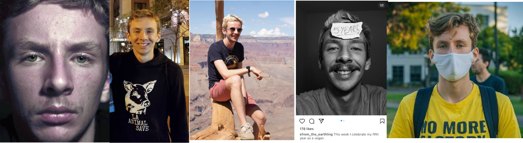Efrem E. Blitz (Born 2003), is an outreach organizer for the radical animal rights group Direct Action Everywhere (DxE) who was arrested at a Sonoma County (CA) "direct action" in the late 2010s. He was only 15 or 16 when he was arrested and his juvi record isn't public. His charges may have been dropped. He's a plant sciences major at UC-Santa Cruz and is scheduled to graduate in 2025. When he's not in Santa Cruz, he may live with his father, or possibly his grandfather, in El Cerrito, north of Berkeley. https://archive.ph/lXRbp#selection-1185.311-1185.322 https://www.linkedin.com/in/efrem-blitz-4955441a9
