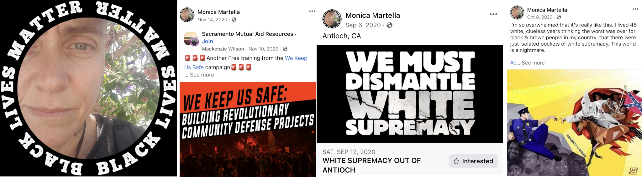 Monica Therese Martella (born Apr. '71) is a member of the radical animal rights group Direct Action Everywhere (DxE) who was arrested at a "direct action" in Sonoma County (CA) in the late 2010s. She doesn't have a permanent criminal record, so the charges were probably dropped. She's a police abolitionist but strangely, for a leftist, is pro-life. Martella went to a Christian college and studied bible but it's not clear she graduated. She attends Vegan mass, which is strange because wine and wafers are Vegan anyway. She works in crap jobs such as janitorial work and as a warehouse worker. https://archive.ph/lXRbp#selection-1185.662-1185.677