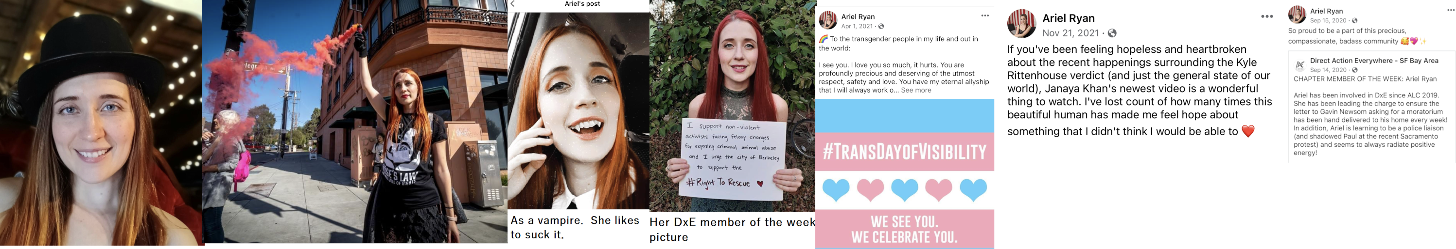 She's a member of the radical animal rights group Direct Action Everywhere (DxE) who was arrested at an "action" on a Sonoma County (CA) duck farm in the late 2010s. Ryan claimed sitting on the prisoner bus with 20 other DxE members was her fondest activist memory. She later participated in a DxE blockade of the Farmer John slaughterhouse in L.A. but doesn't appear to have been arrested. She was the SF DxE chapter member of the week in September 2020. Ryan attended the 2023 Animal Liberation Conference where attendees were taught how to best liberate (steal) livestock. Ryan is in a Cirque du Soleil like clown acrobat troupe called Fou Fou Ha. She makes lots of references to her queer friends and she's probably a lez herself. She's part of the San Fran DxE chapter and presumably lives in the city or close by. https://archive.ph/lXRbp#selection-1185.95-1185.105