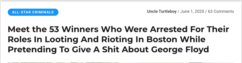 https://www.tauntongazette.com/news/20200601/taunton-resident-among-53-arrested-following-boston-protests https://turtleboysports.com/meet-the-53-winners-who-were-arrested-for-their-roles-in-looting-and-rioting-in-boston-while-pretending-to-give-a-shit-about-george-floyd/ Brian Pulliam, 35-years-old, of Lowell, Assault and Battery on a Police Officer, and Disorderly Conduct.