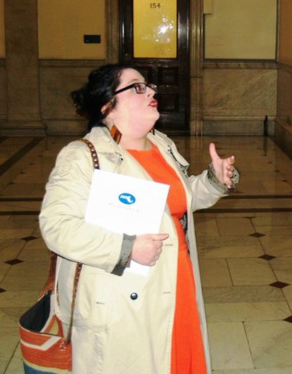 Part of a mixed cell of about 50 Antifa who blocked several roads in Worcester, Massachusetts during an "Anti-President's Day" protest during February of 2017. Members came from several different local Antifa organizations including Worcester Antifa, Western Massachusetts Antifa Network, and Antifascist Action New England. Seven individuals in the group were arrested for "disorderly conduct and disturbing the peace." Also intimidated a local news reporter, Kim Ring, who attempted to interview them. Bilman was also charged with "carrying a dangerous weapon and resisting arrest." She had brass knuckles in her possession at the time of her arrest. https://www.worcestermag.com/2017/02/20/seven-arrested-presidents-day-weekend-anti-fascism-rally https://webcache.googleusercontent.com/search?q=cache:CgBw5LeZOQsJ:https://www.telegram.com/news/20170223/anti-fascist-protesters-arrested-in-worcester-plead-not-guilty+&cd=1&hl=en&ct=clnk&gl=us She's the fat chick wearing green in the group photo. She lived in Chelsea at the time of her arrest and worked as an English as a second language teacher. Bilman had a 2019 arrest for disorderly conduct which may be protest related. https://web.archive.org/web/20210614162204/https://turtleboysports.com/meet-the-7-fun-sponge-anarchists-arrested-for-attacking-worcester-cops-carrying-weapons-and-blocking-public-streets/
