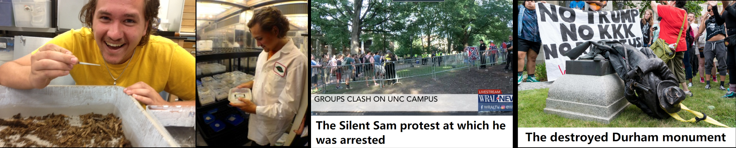 Joseph Baldoni Karlik (DOB: 07/29/91) was part of a group that destroyed a Confederate monument in front of a Durham courthouse in 2017. The DA later dropped his charges. He was arrested again in 2018 at a Silent Sam statue protest on the UNC campus. He later organized a teaching assistant strike against the restoration of the damaged statue. Karlik was a grad student at UNC at the time of his arrests. He's a member of the Party for Socialism and Liberation. Karlik majored in biology and physics at UNC-Chapel Hill. While at UNC, he was the leader of the workers union. Karlik lives in a small house in Chapel Hill. https://archive.ph/zRx0i#selection-1603.67-1603.80 https://archive.ph/ha3Tf#selection-5741.0-5741.21 https://archive.ph/Leetx#selection-883.46-883.60 https://archive.ph/lbsFi, https://archive.ph/6pXeR