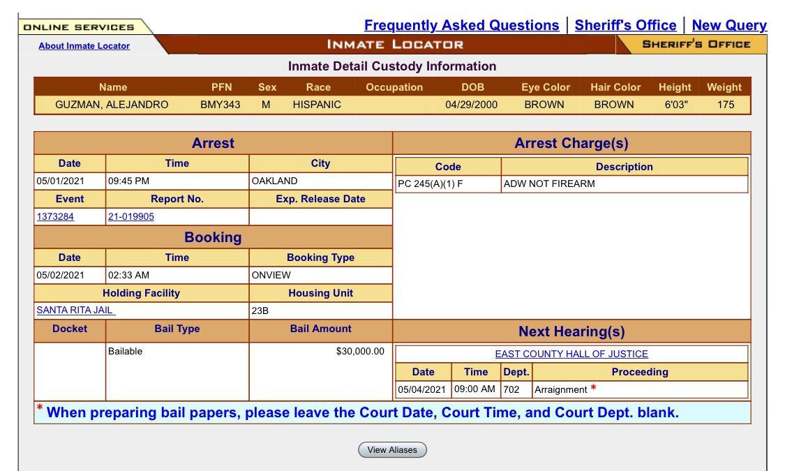Alejandro Guzman (21) was arrested for felony assault during the May 1st #Oakland #Antifa #riot. 'Allegedly' threw a soup can at officers. Two officers were injured during the planned riot https://archive.ph/ZRcu2 https://www.sfchronicle.com/crime/article/Oakland-police-arrest-two-demonstrators-on-16145165.php