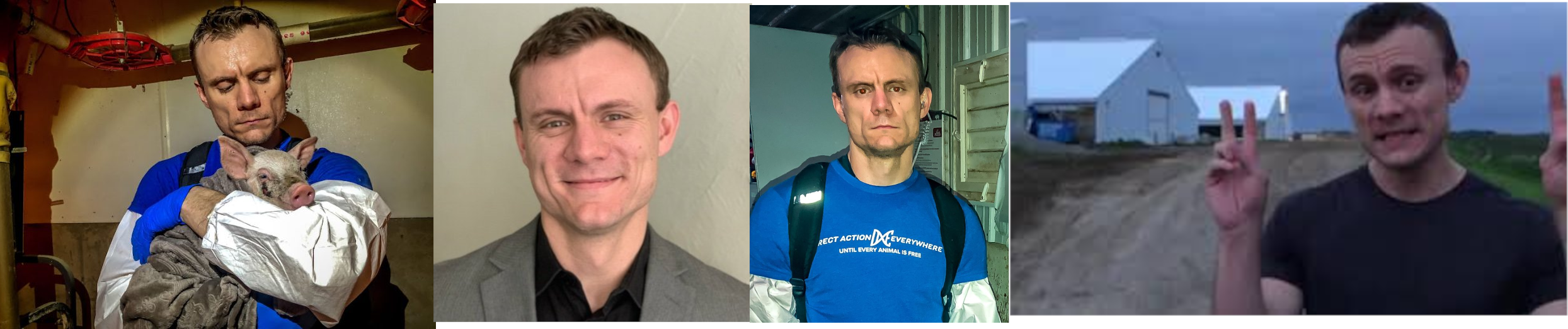 He's an investigator and the press secretary for the radical animal rights group Direct Action Everywhere (DxE). He pignapped a young swine from an Iowa farm in 2020 and was charged with three felonies including burglary and trespassing. He appeared on air twice impersonating Tyson Food's CEO. He also gave an interview while impersonating Smithfield Foods CEO. He doesn't appear to have been charged in the incidents although impersonating another person could be identity theft. Johnson was allegedly romantically involved with his DxE comrade Kacia Doolittle. He's a native of Iowa and served four years in the National Guard. He lives in a basement apartment in Berkeley where it seems he does most of his work for DxE. https://archive.ph/AjX2w https://archive.ph/YNedl https://en.wikipedia.org/wiki/Direct_Action_Everywhere