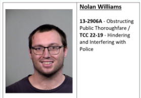 https://www.fox10phoenix.com/news/tempe-police-7-arrests-made-during-black-lives-matter-protest https://twitter.com/TempePolice/status/1288233593265782784/photo/1 Obstructing Public thoroughfare Hindering and interfering with police