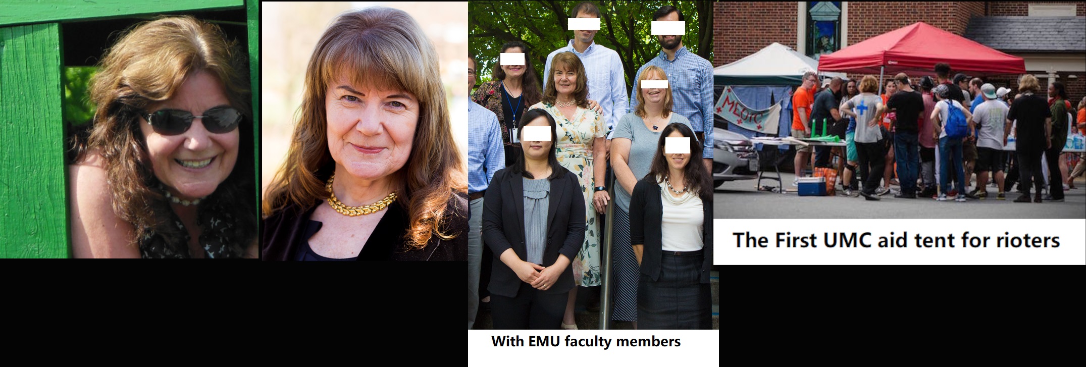 Irma Heppner Mahone (DOB: 12/22/49) participated in the Charlottesville Unite the Right counter-protest. She's a member of the First United Methodist Church of Charlottesville and is believed to have been one of the members manning an aid station that dispensed drinks and medical aid to the rioters. She was an Assistant Professor of nursing at Eastern Mennonite University at the time of the riot but she seems to have retired from teaching and may now run a farm near Charlottesville. She has a PhD in nursing from UVA. She lives on a farm outside Charlottesville. https://archive.is/cS4eR#selection-1033.0-1033.11 https://emu.edu/president/docs/AnnualReport2017.pdf (p.31)