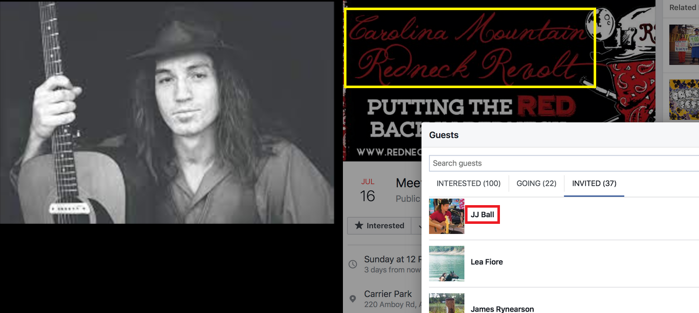 He's probably a member or associate of the Carolina Mountain chapter of Redneck Revolt as he attended or was at least invited to one of their events. His wife/girlfriend Marielle Angell attended the same event. Ball is a musician and busker. He lives with Angell in the Asheville suburb of Weaverville. https://archive.vn/q335fd https://www.youtube.com/watch?v=9m9wzOIDU9c&ab_channel=SteveShanafelt (2010)