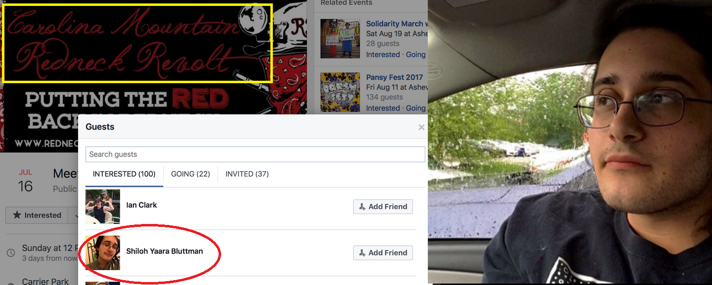 Shiloh Ya'ara Bluttman is probably a member or associate of the Carolina Mountain chapter of Redneck Revolt as he attended or was at least invited to one of their events i 2017. He describes himself as a left-wing organizer, poet and artist. He seems to write a lot about Antisemitism. https://archive.vn/EoQBx https://archive.vn/C5dZA May be living in Minneapolis with a legal new name, allegedly "Sasha Levinson"