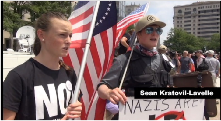 https://national-justice.com/antifa-organizer-exposed-member-elite-political-family Sean Thomas Kratovil-Lavelle, pictured above at an "Antifa" rally next to his sister Charlotte, posts on the Iron Front's reddit under his own name, bragging about engaging in the groups masked antics. Kratovil-Levelle is wearing the three arrows symbol appropriated by anarchist paramilitary organizations, while his sister is wearing a "Refuse Fascism" t-shirt, a group run by the Revolutionary Communist Party.