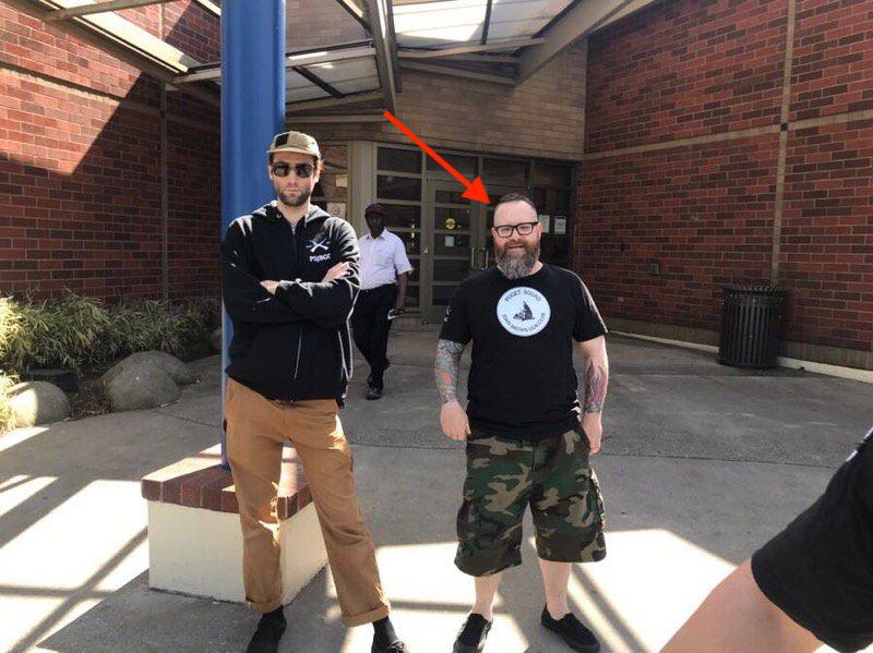 https://www.npr.org/2020/07/23/893533916/i-am-antifa-one-activist-s-violent-death-became-a-symbol-for-the-right-and-left Founder Duke Aaron greets members of the Puget Sound John Brown Gun Club. In 2017, van Spronsen was the club's first recruit.