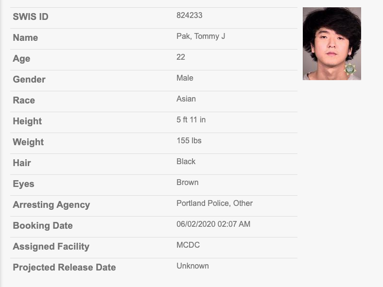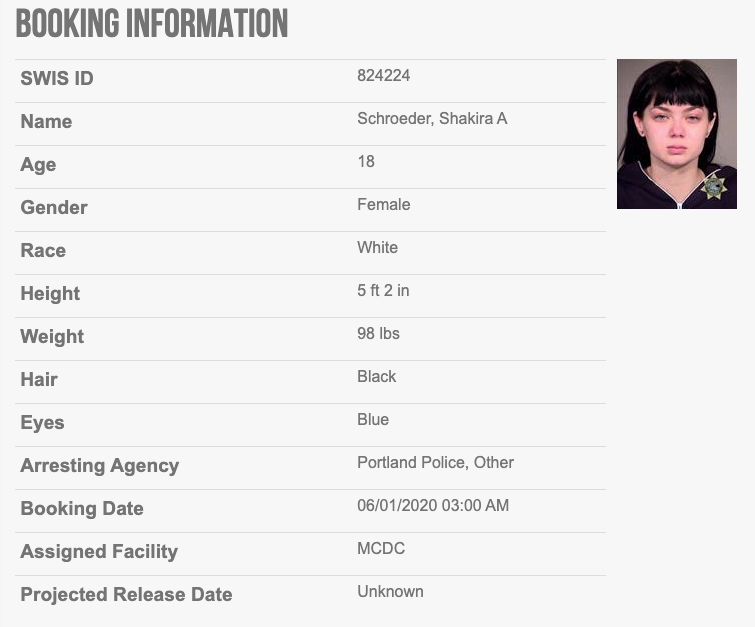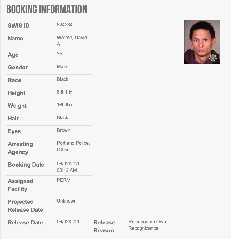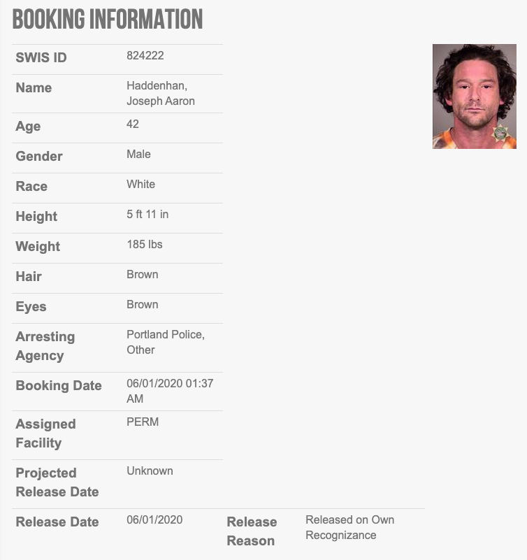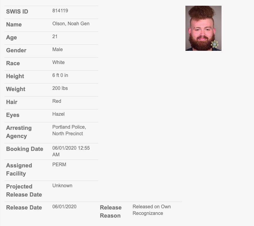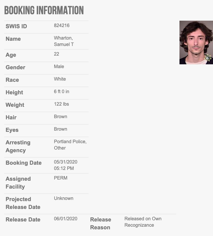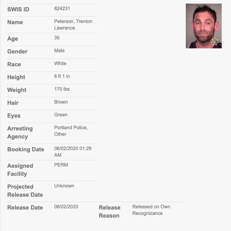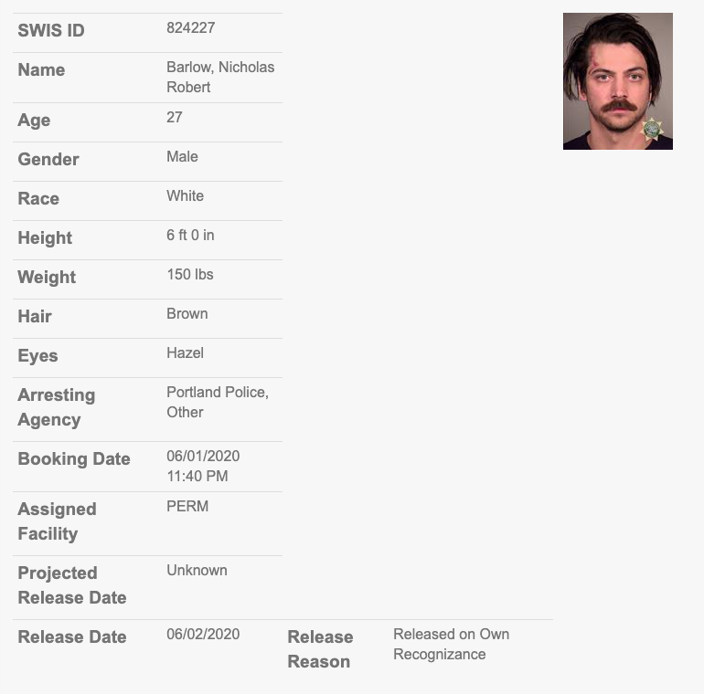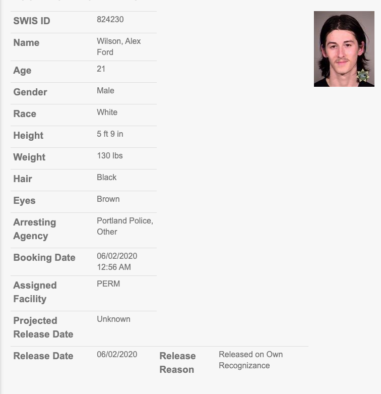 INTERFER PEACE OFF (A Misdemeanor) DISORDERLY COND 2 (B Misdemeanor) ESCAPE III (A Misdemeanor) Participated in the pearl district antifa riot on Friday, March 12, 2021 https://www.portlandoregon.gov/police/news/read.cfm?id=301580