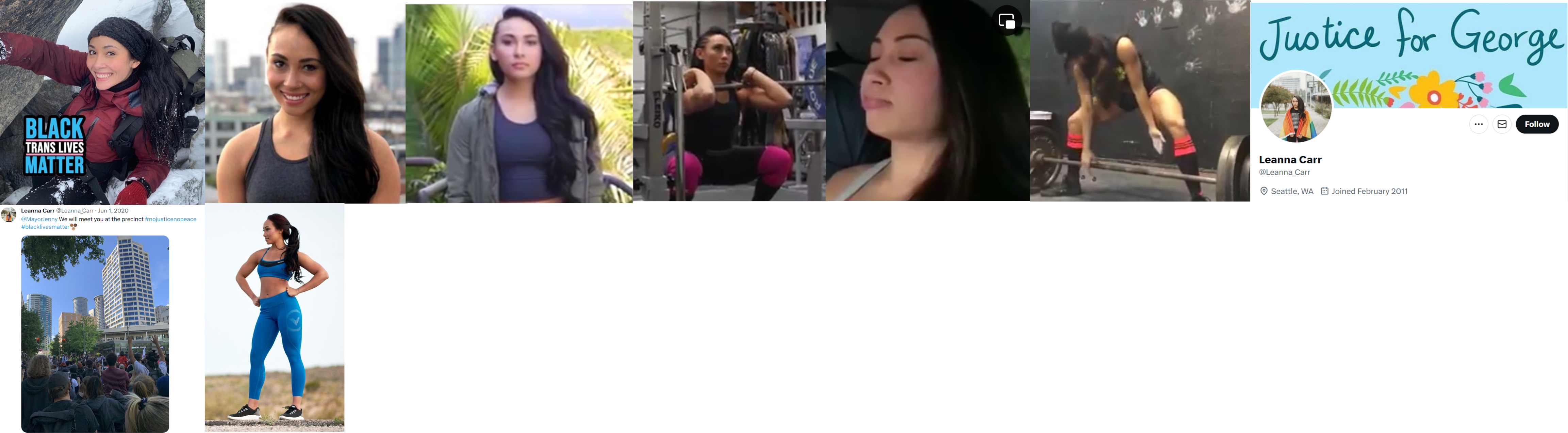 Leanna Troi Carr (Born Oct. '91) is a psychology PhD candidate who, along with her fiancé Ben Koenisgberg, opened a free hot dog stand to feed Seattle rioters in the summer of 2020. She was hit in the leg by non-lethal ammo when police were forced to control the mob. Carr claimed to have missed weeks of work and study due to her injury. She later sued the city. Carr works as a fitness trainer and sports psychologist. She's really into weightlifting and appears to have worked as a fitness model for a while. She backs trannies but I wonder how she would feel if a fake woman competed against her in a power lifting competition. She lives in Seattle. https://web.archive.org/web/20231213144131/https://southseattleemerald.com/wp-content/uploads/2021/08/Third-Amended-Complaint-Draft-030221-Clean.pdf (pp. 100-101) https://www.linkedin.com/in/leanna-carr-31a247100