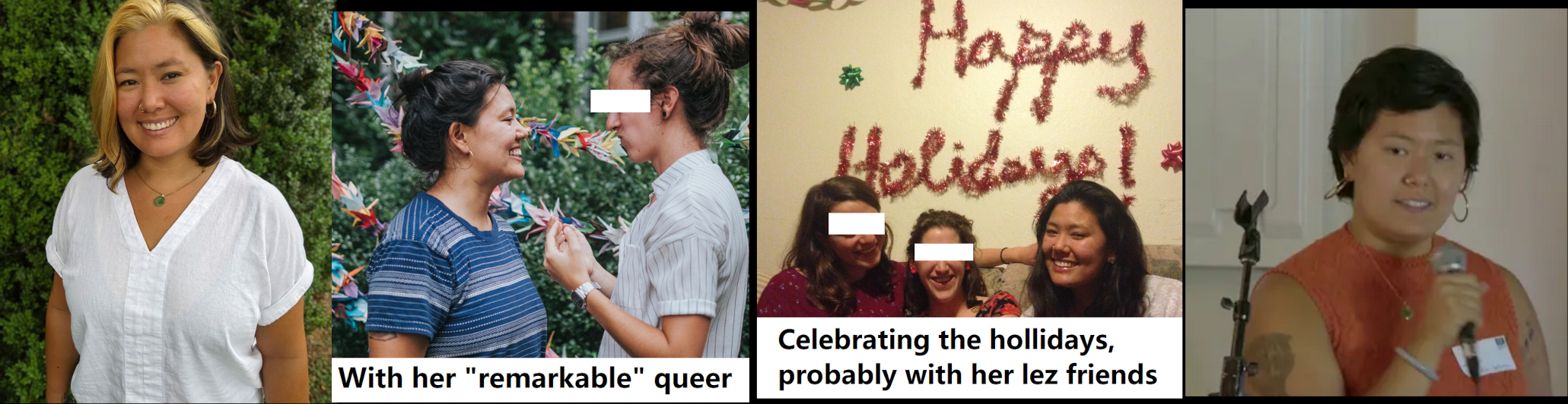 She's an organizer for the radical group Showing Up for Racial Justice. She hints that she was at the violent UTR counter-protest in 2017 but we can't find the source documents to prove it. Given that she founded the Charlottesville chapter of SURJ, it's highly probable she was there. She seems to be employed (as of 2022) as SURJ's national communications director. Her bio on the SURJ website says she's a multi-racial Asian American Southern queer femme. She was raised in an upper middle class family. She claims to be married to a "remarkable queer" and they live in Virginia on traditional Monacan territory. She's a youth leader for the left-wing Episcopal church and works in a community garden sponsored by the Episcopalians. Aheron probably lives in the Charlottesville area. https://web.archive.org/web/20220422130056/https://surj.org/people/grace-aheron/ https://web.archive.org/web/20210506092621/https://www.episcopalnewsservice.org/2017/08/18/episcopal-supported-intentional-community-in-charlottesville-embodies-radical-discipleship-and-permaculture/ https://www.youtube.com/watch?v=TtBYK4F2wOU&ab_channel=CreativeMorningsHQ https://www.flickr.com/photos/112379843@N02/