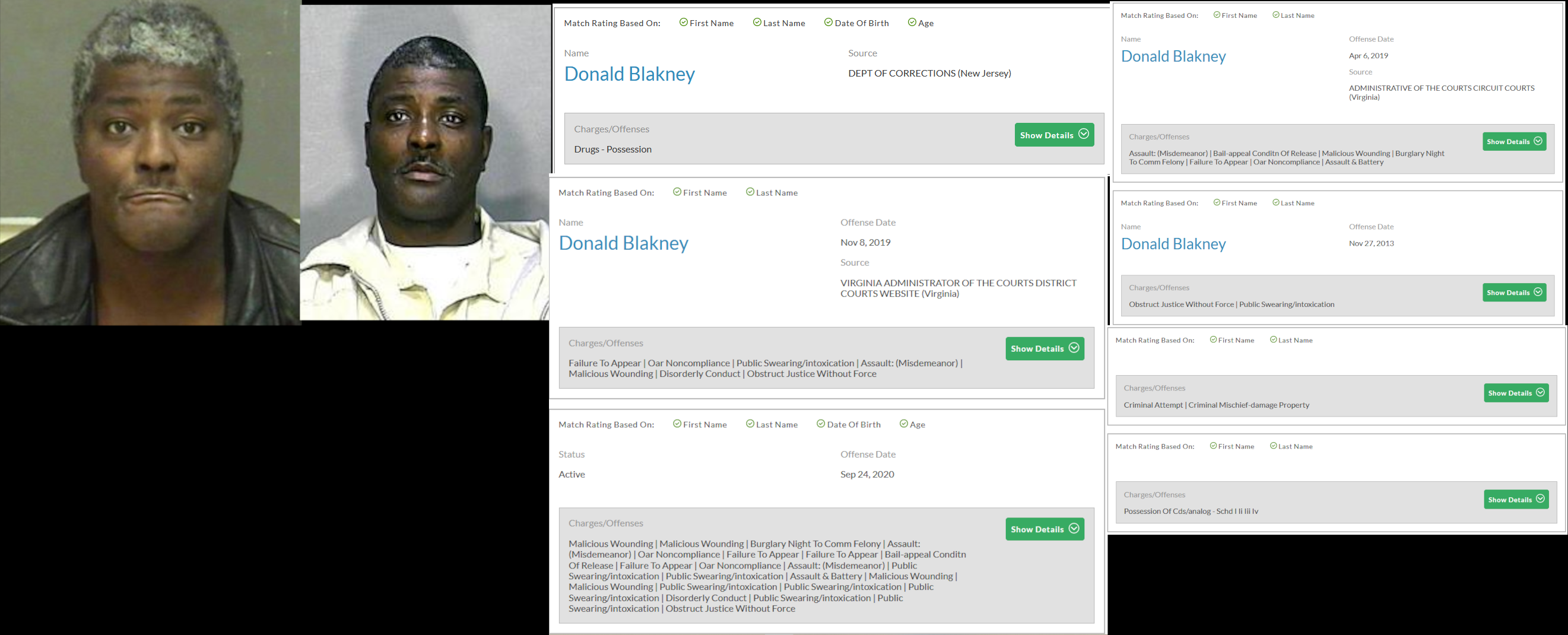 Donald A. Blakney (DOB: 04/19/66) was arrested and later plead guilty at Unite the Right counter protest for using a stick to assault a marcher from Arkansas. He has a very long rap sheet with arrests for drug possession, assault, malicious wounding, night burglary, failure to appear, assault and battery, obstruction of justice, public swearing and criminal mischief. Blakney allegedly "works" as a panhandler. He doesn't have a computer or read the news. He lives in a small trailer park in the middle of nowhere about 20 miles south of Charlottesville. Is dead - https://vdare.com/articles/four-antifa-goons-who-attacked-charlotteville-unite-the-right-protesters-are-dead-what-gives