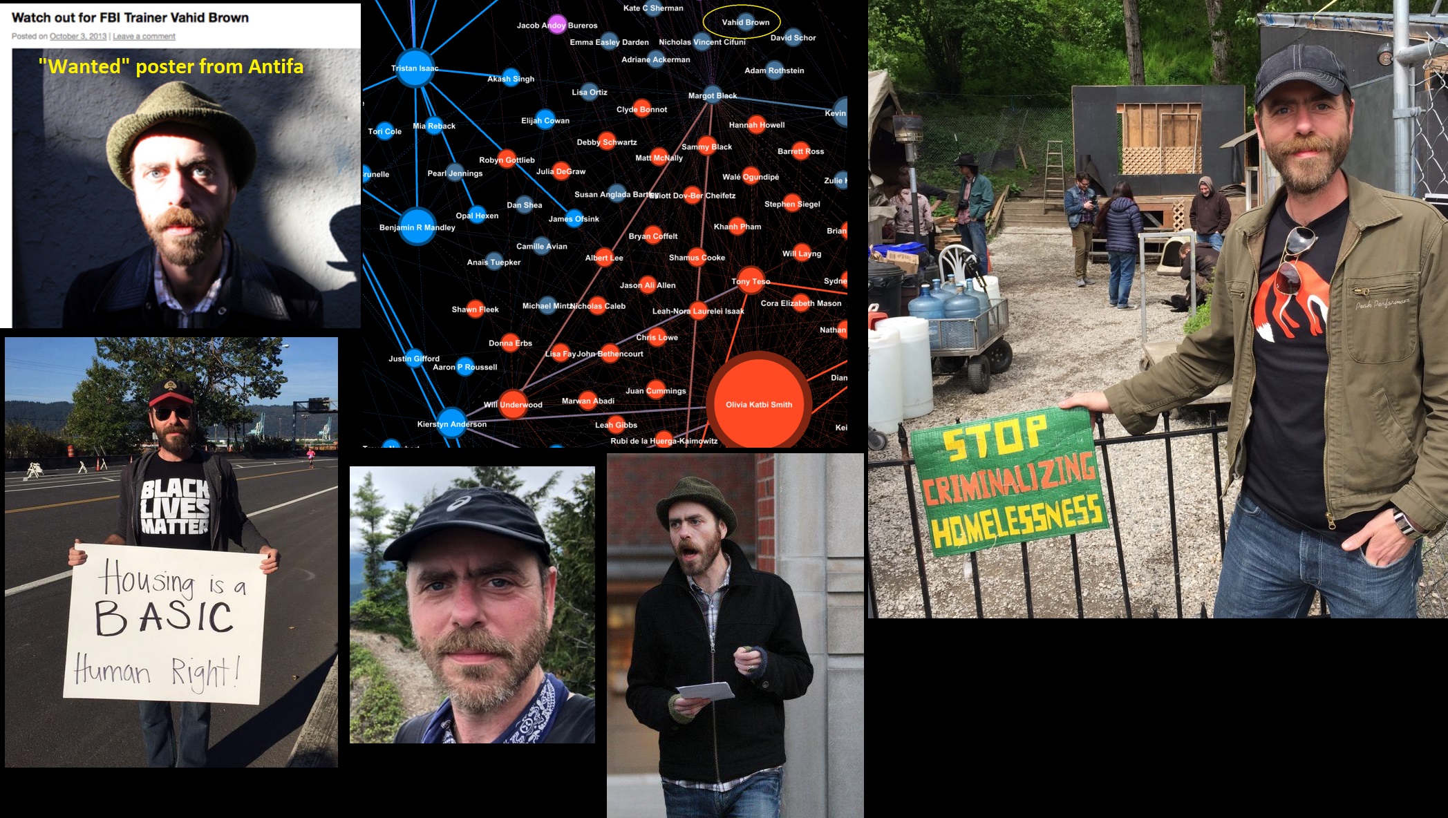 He's alleged to be connected on social media to multiple wings of Rose City Antifa. In 2013, he was accused of having trained FBI agents and being an FBI mole and was ostracized by Rose City Antifa. Brown did teach a class on political Islam while an instructor at the Combating Terrorism Center at West Point but he denied being a snitch or spy. Brown and Antifa seem to have kissed and made up as the attached network diagram shows he was actively communicating with Antifa members in 2018-2019 when the network information was compiled. Brown is an Islamic scholar who graduated from Reed college in Portland in 2007. He's the author of "Cracks in the Foundation: Leadership Schism in al-Qaida from 1989-2006. Brown's activism seems to be mostly homeless advocacy as he was one of the founders of the Hazelnut Grove squatter camp. He works for Clackamas County. Brown lives in the Sunnyside neighborhood in Southeast Portland. https://archive.vn/3Zlsx, https://archive.vn/yOdsg, https://archive.vn/1phCY, https://archive.vn/9PwzX, https://archive.vn/doIt1