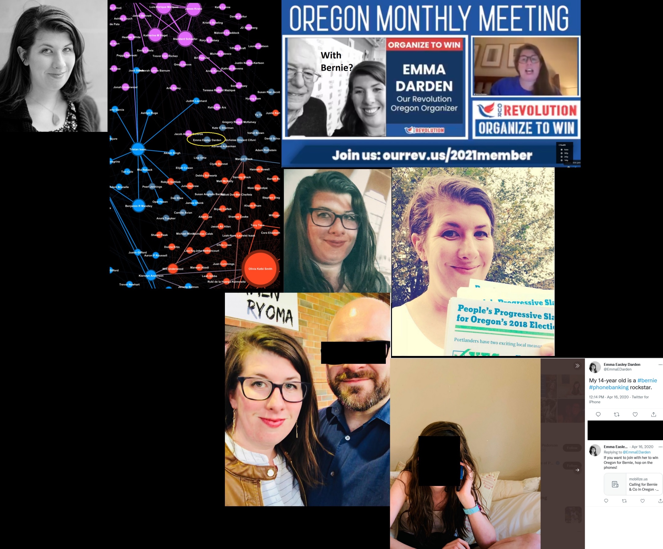 Emma Easley Darden (DOB: 12/24/78) is allegedly connected to many Portland Antifa members. She's a Bernie Belle who co-founded BerniePDX in 2016. She even conscripted her 14 year old daughter to work the phones for Bernie. She also founded a non-profit known as "Portland Forward Action" in 2019. The group allowed its registration to lapse but its web page appears to remain active. Darden works as a professional photographer. She lives in a rental home in west Portland. https://www.portlandforward.org/ https://ms-my.facebook.com/ourrevpdx/videos/284134139945593/ https://www.flickr.com/photos/reversedlensphotography/with/8511242814/ (Mostly professional photos of non-Antifa people)