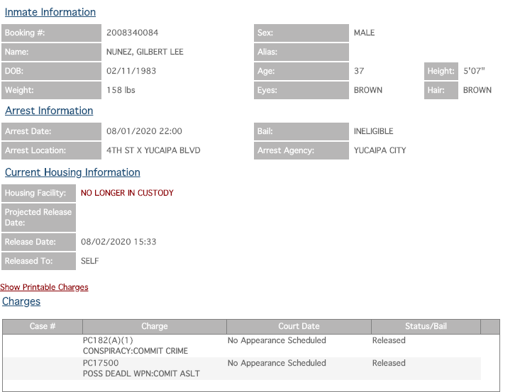 http://inmate.kenoshajs.org/NewWorld.InmateInquiry/kenosha/Inmate/Detail/-597639 FAIL TO COMPLY W/EMERGENCY MANAGEMENT ORDER OF STATE OR LOCAL GOVERNMENT OBSTRUCTING/RESISTING AN OFFICER INTENTIONALLY POINT FIREARM AT PERSON DISORDERLY CONDUCT