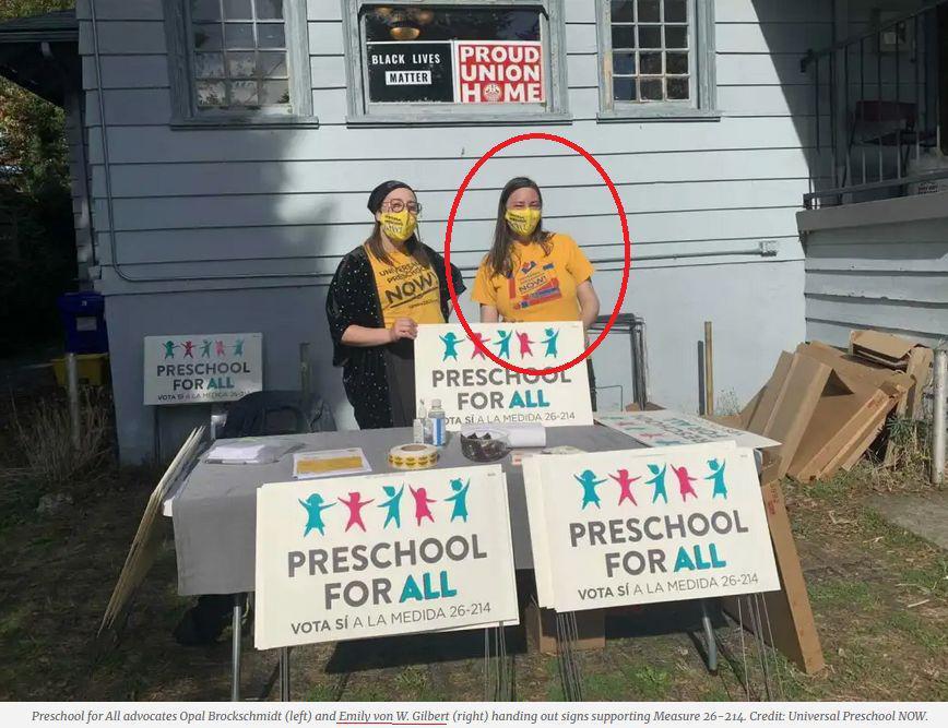Emily Von Gilbert, AKA Emily von W. Gilbert, is alleged on certain boards to be one of Antifa's coordinators in the Portland area. She's definitely the coordinator of UP NOW, a child care advocacy organization, and a member of the Democratic Socialists of America (DSA). She works as a film editor and probably attended NYU before moving to Portland. Judging from online photos, she may be a furry, a person who achieves sexual gratification by dressing up as an animal and doing it like they do on the Discovery Channel. https://archive.vn/Bgf6Y https://archive.vn/7TuwP https://archive.vn/4Wyts https://archive.vn/kY7kL#selection-857.0-857.20 She has social media connections to numerous Rose City Antifa members/associates. She's in the same social circle as Olivia Katbi Smith (https://antifawatch.net/ViewReport/1f066303) and her husband Connor (https://antifawatch.net/ViewReport/06ce166d). She's aged and blimped out substantially recently (see photo). https://archive.vn/V82xr#selection-739.57-739.77