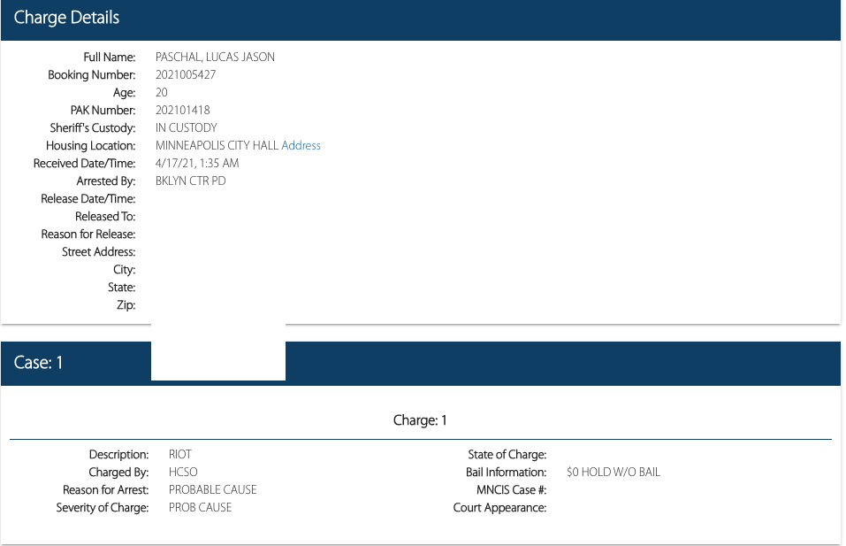 Arrested during the Brooklyn Center (Minneapolis) Minnesota Riots between 4.12 and 4.17