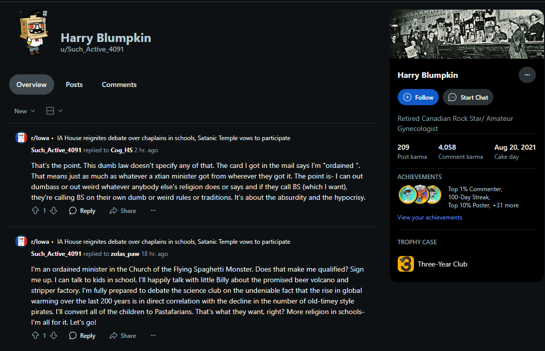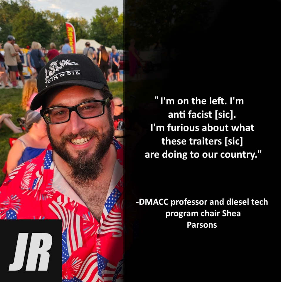 Shea Newell Parsons is a diesel mechanic professor at Des Moines Area Community College (DMACC). He has called for the murder of right-wing activists and refers to republicans, christians, conservatives, and other non-progressive groups as mentally deficient and evil. Parsons is active on Reddit, where he has aired many unhinged threats, as first covered by the Justice Report. He calls himself an antifascist and claims he is armed and ready to fight back against Trump and the country's so-called slide into "fascism." He claims he has worked on hiring committees for the trucking and diesel repair industries and can make or break people's careers in the field. https://justicereport.net/2025/02/27/antifa-professor-at-iowa-college-linked-to-violent-social-media-threats/